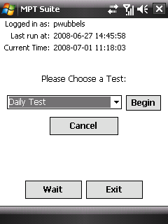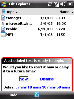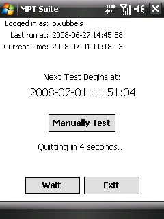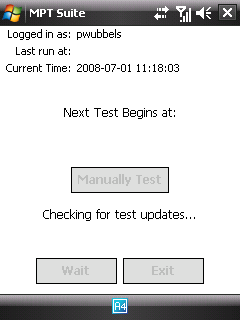 Once updates have been applied, the system either starts a test (if one has been scheduled), or simply exits and tells the phone to restart the software at the time of the next test. (Figure 11)