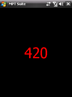 The fourth task is the Psychomotor Vigilance task. This task presents a black screen with a high contrast red prompt that shows response time. (Figure 20) The response time starts at zero and counts up in one millisecond intervals until a response is made. If no response is made, the current trial is tagged as a ‘non-response’, and the system clears the screen to prepare for the next trial. If a response is made, then the response time is logged, the screen is cleared, and the system prepares for the next trial. Delays between trials vary randomly and can be configured by the test designer. By default, the intervals range from 2 to 12 seconds. Other configurable variables for this task include total task time, and maximum response time.