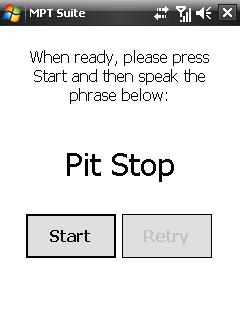 The third task in the testing suite is the Voice Analysis task. To determine levels of fatigue, a user is asked to speak a series of phrases into the phone’s microphone, and the raw audio data is transformed into a speech vector called the Mel Frequency Cepstrum Coefficients. This transformation is commonly used in speech recognition technologies and deviations in a speaker’s vector can be linked to fatigue. If during the recording of a particular phrase, the user deems the recording inaccurate (due to high background noise, interruptions, etc), the user may redo the recording process by clicking ‘Retry’. (Figure 19) The speaking prompts for the user can be changed by the test designer and also, to facilitate future changes to the audio processing, both the raw audio (8kHz Mono) and processed speech vectors are recorded in the testing log files.
