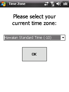 Each battery of tests begins with a quick selection of the current time zone by the user. (Figure 14). This allows tracking of the current time zone even if tests are scheduled and taken in different time zones. The program remembers the user’s last time zone selection.