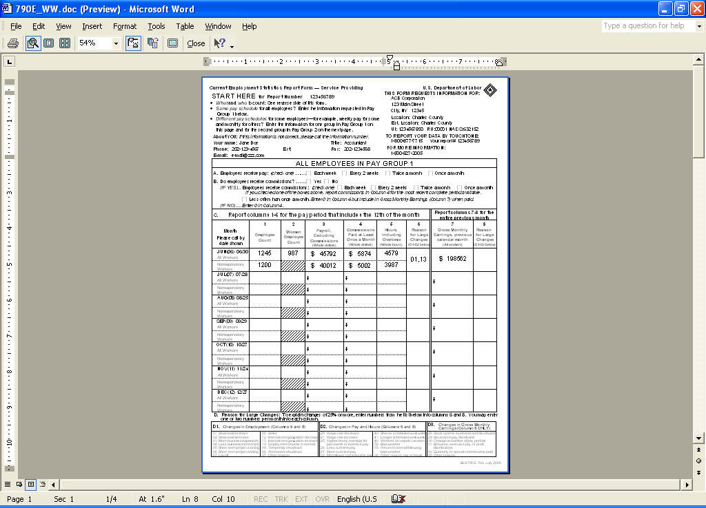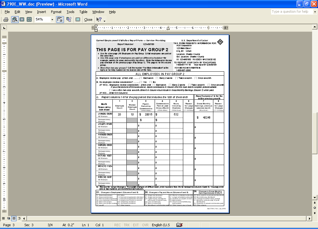 * Note: Depending on your industry, the form you received may look slightly different than the one displayed here and may refer to production or construction workers rather than nonsupervisory workers.