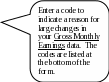 Select codes from the bottom of the form (boxes D1- D3) to explain large changes to your Gross Monthly Earnings.