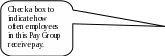 6 "For the first pay group, please indicate the length of the payroll period. If the payroll is every week, press 1. Every two weeks, press 2. Twice a month, press 3. Once a month, press 4."
