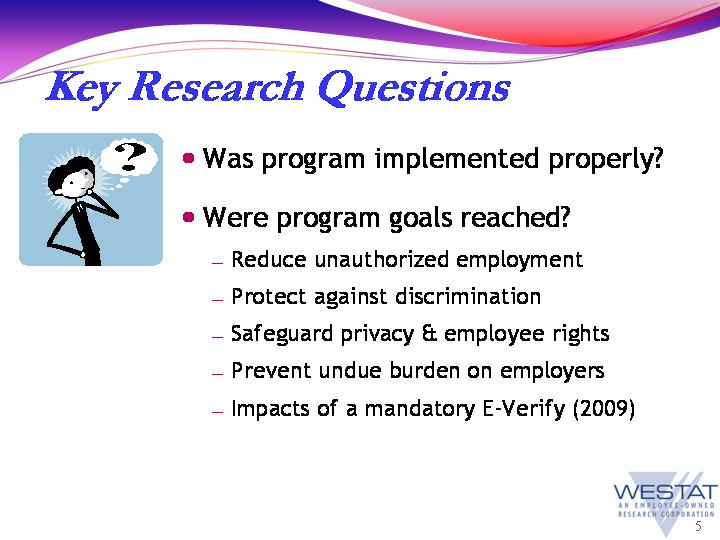 Westat Project Director, E-Verify Evaluation 2009-2010, gave a