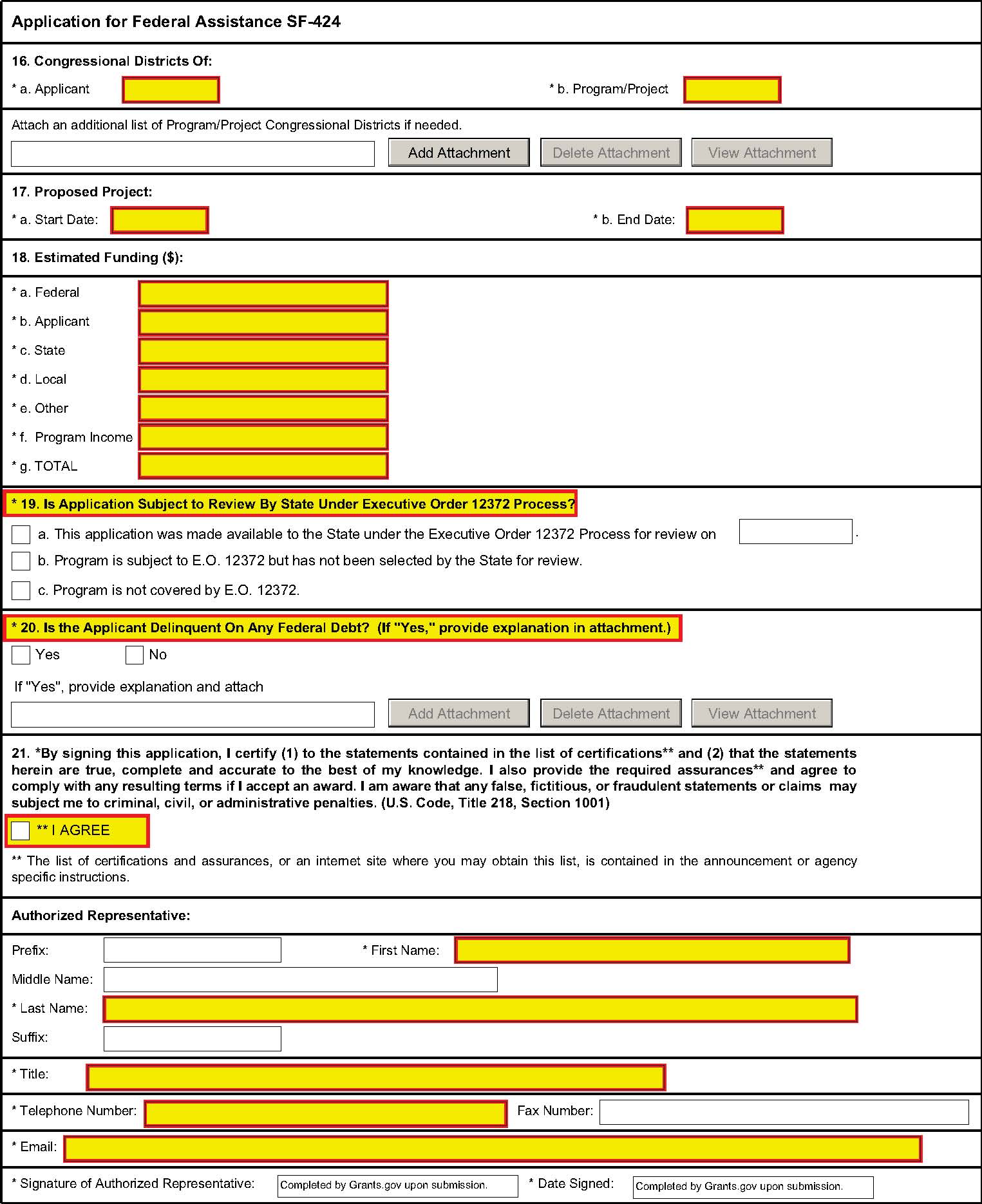 Step 9 - Fax the signed SF 424 Cover Page (or Program Specific Cover Page). Write your unique application number (received in step 8) on the upper right corner of your printed SF 424 Cover Page (or Program Specific Cover Page), and fax it to the Application Control Center (202) 245-6272 within 3 business days of submitting your e-Application.