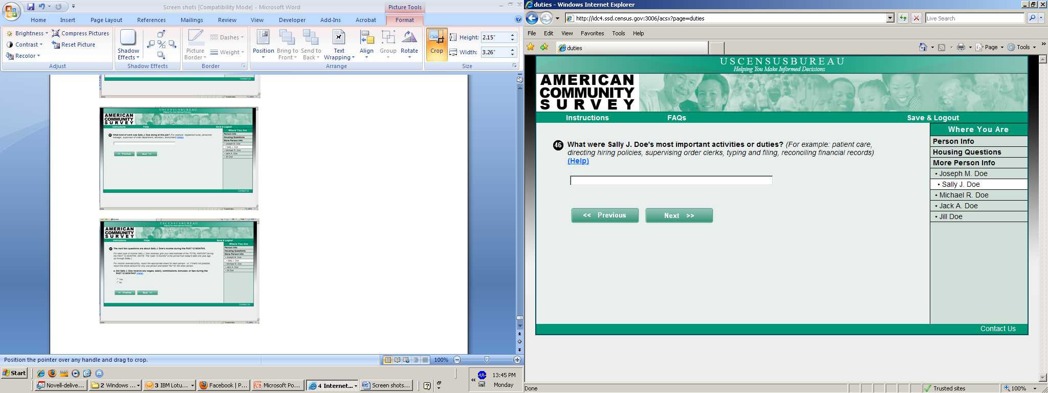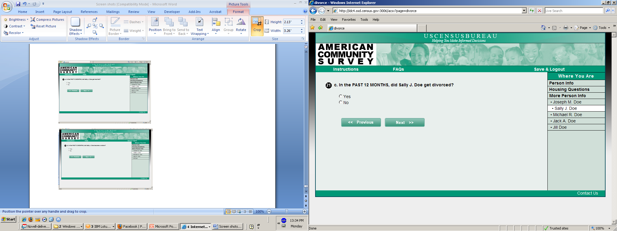 Various Demographic Pretesting Activities