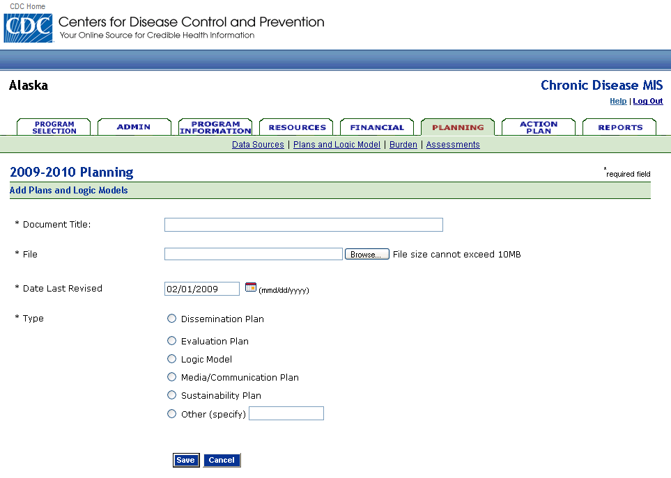 NCCDPHP MIS Proposed Screens
