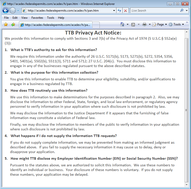 Privacy Act Statement Page