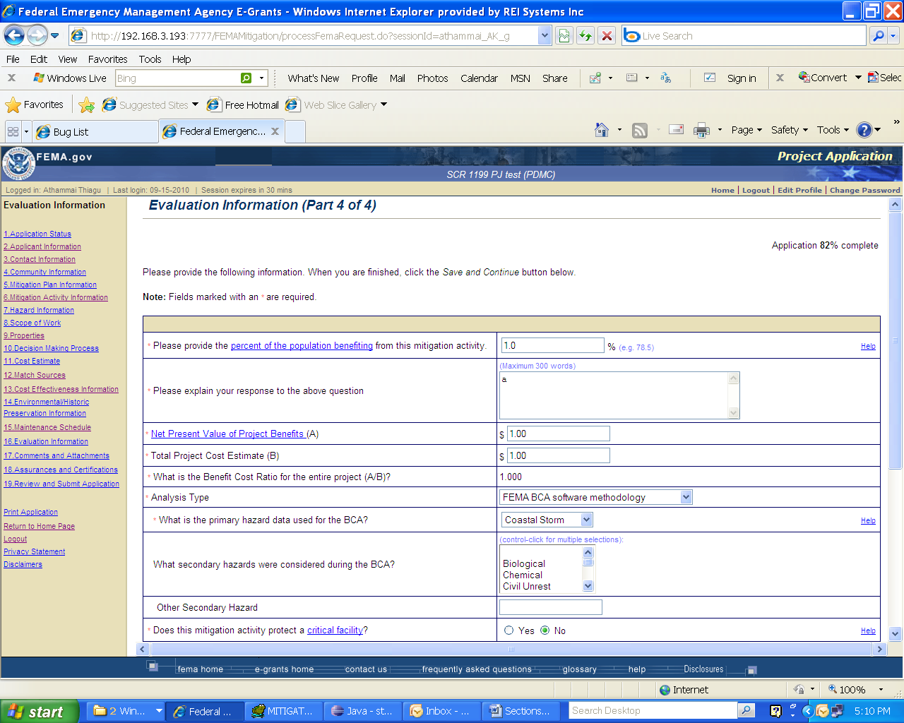 Public reporting burden for this data collection is estimated to average 12 hours per response. The burden estimate includes the time for reviewing instructions, searching existing data sources, gathering and maintaining the needed data, and completing, and submitting this form. This collection of information is required to obtain or retain benefits. You are not required to respond to this collection of information unless it displays a valid OMB control number. Send comments regarding the accuracy of the burden estimate and any suggestions for reducing this burden to: Information Collections Management, Department of Homeland Security, Federal Emergency Management Agency, 500 C Street, SW, Washington, DC, 20472, and Paperwork Reduction Project (1660-0072). NOTE: Do not send your completed form to the above address.