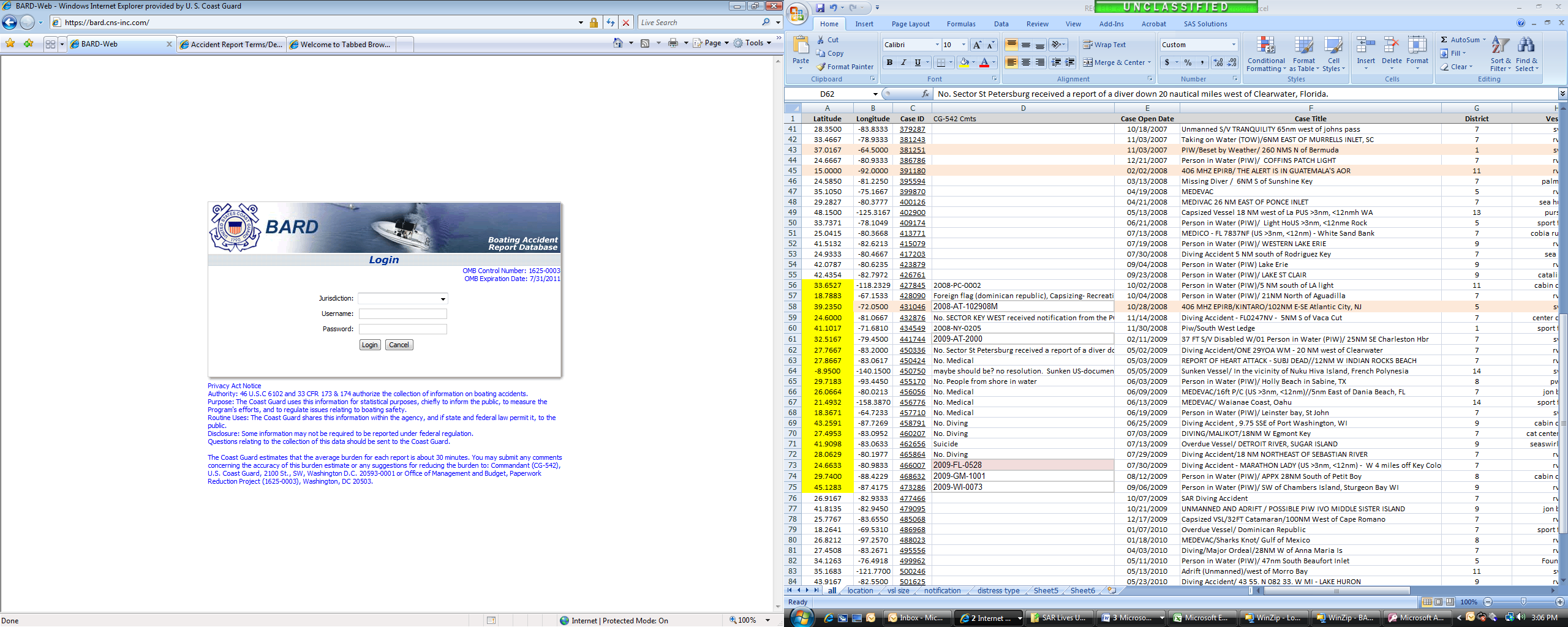 Users can also search for records by fields such as the name of operator, victim, owner, the date of accident, the name of body of water, vessel ID, hull identification number, and the case ID.