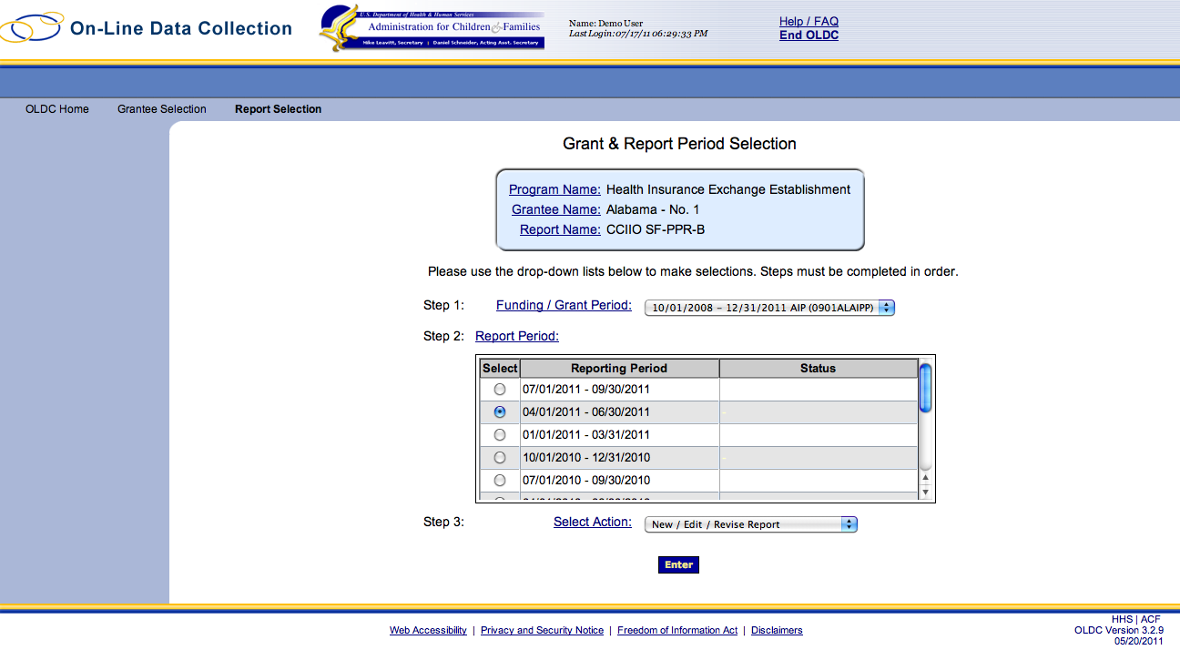 Screen 7 – Grantees and the awarding agency are able to track report status and revisions, as well as export the data reported.