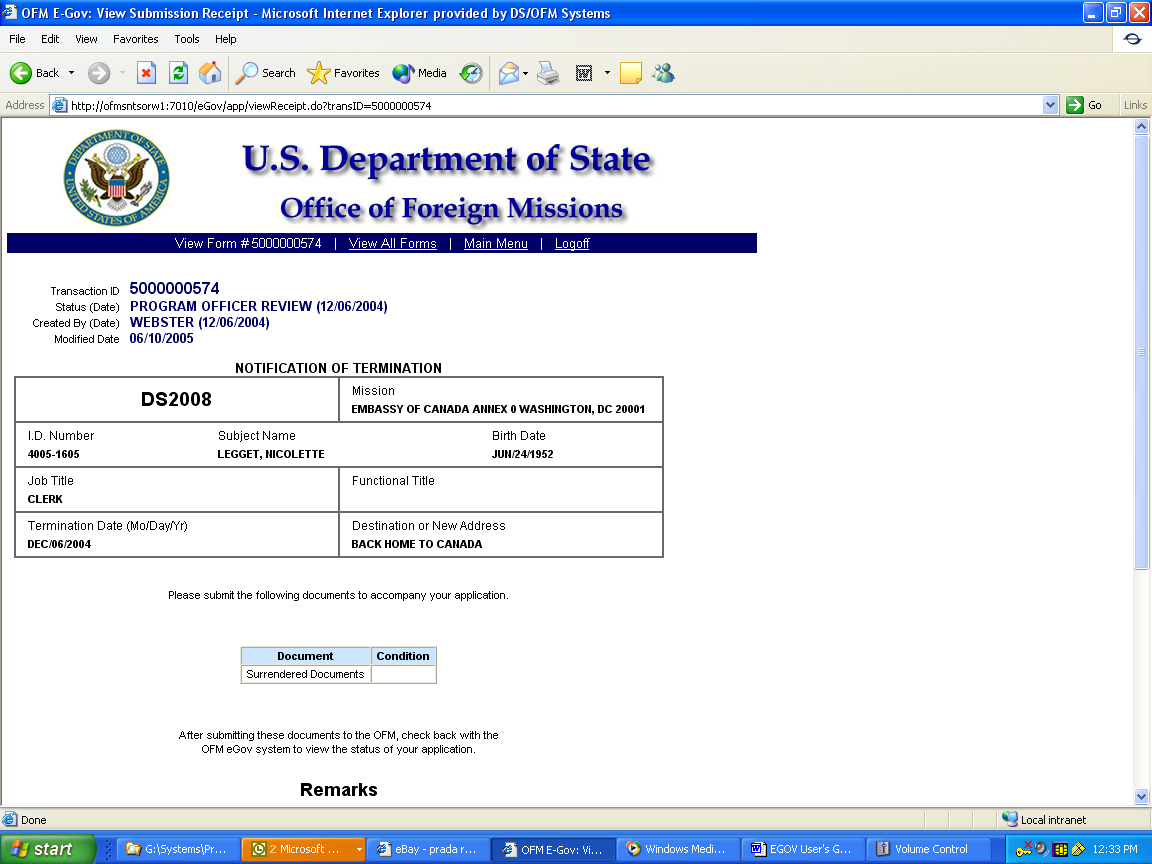 8.4 - Applying for Notification of Termination of Diplomatic, Consular, or Foreign Government E