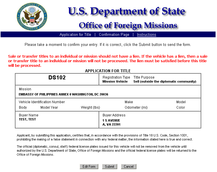 Figure 6.3-6 – Confirmation Page for Title