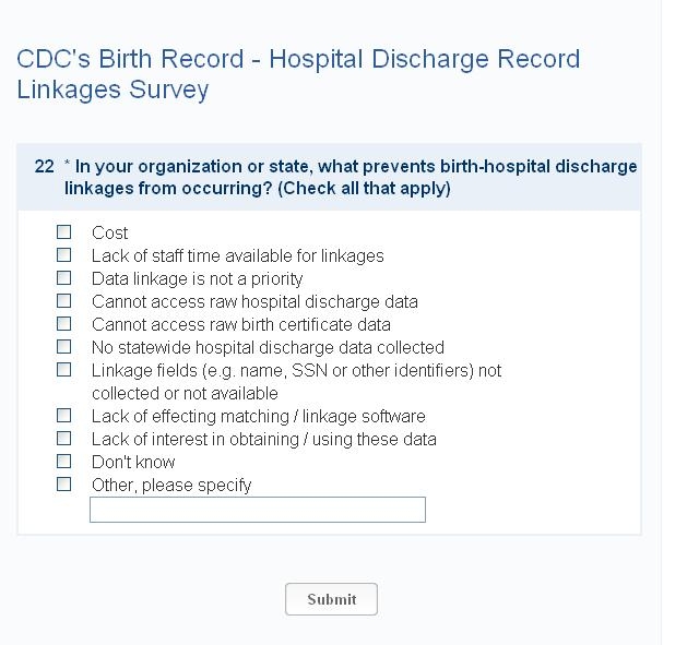 Birth Certificate and Hospital Discharge Linkage - State Survey