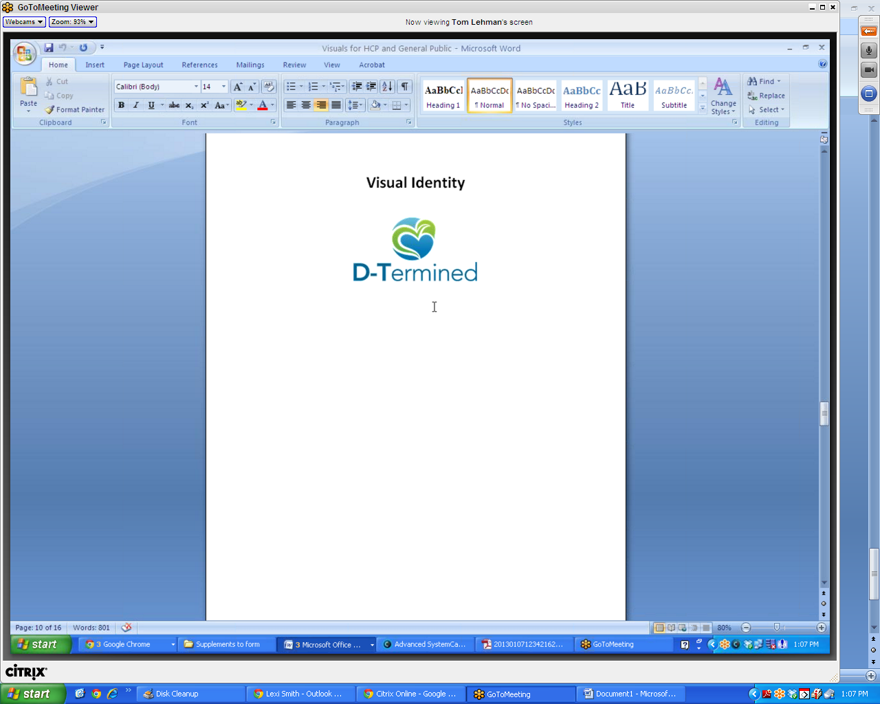 The triads with health care professionals will be conducted remotely using a toll-free telephone line and by computer using the GoToMeeting web conferencing service. Instructions on how to join the discussion by phone and computer will be provided to the participants by e-mail. During the discussion group messages will be presented to the participants in a fashion similar to how they are shown to the in-person focus group participants, except that the remote participants will be viewing them on their computer screen [See subsequent pages for further details about procedures that will be following for remote discussion groups and for screenshots of how brand concepts, messages and materials will be viewed by remote participants).