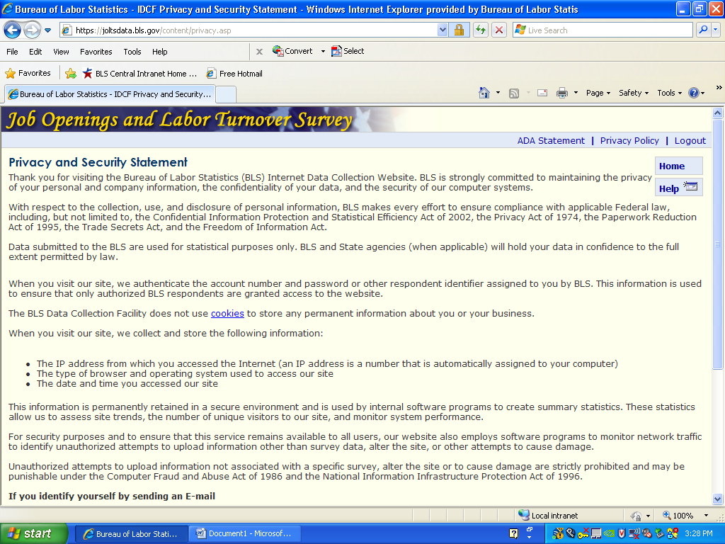 BLS-1411-W1 Job Openings and Labor Turnover Report