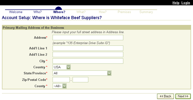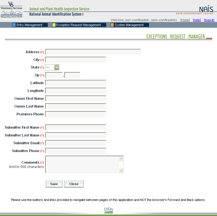 These screen shots from the SPIS are typical of the whole application. The successive screens allow either a premises owner or operator or a State administrator working on the owner or operator’s behalf to submit premises information directly to the State premises identification system and to the Premises Repository/Allocator. Data is entered only once, and some data is stored in both the State and Federal databases. Thus, there is no redundancy in data input, no errors from repeated input of the same data, and no paperwork. This ensures an effective, efficient method for premises registration. |