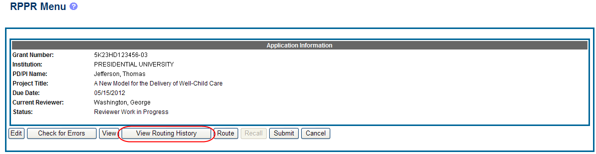 Figure 1: RPPR Navigation Links from Cover Page 6
