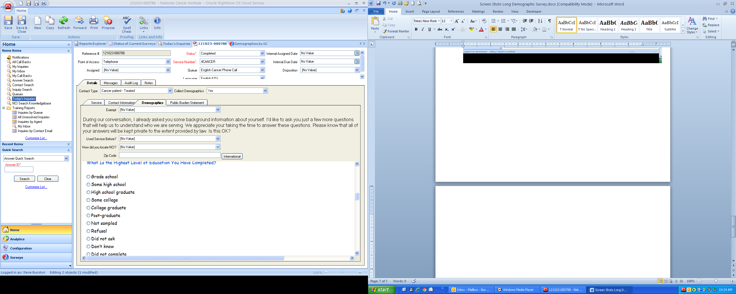 Note: The Information Specialist only asks callers their level of education. The other radio buttons are only for internal coding.