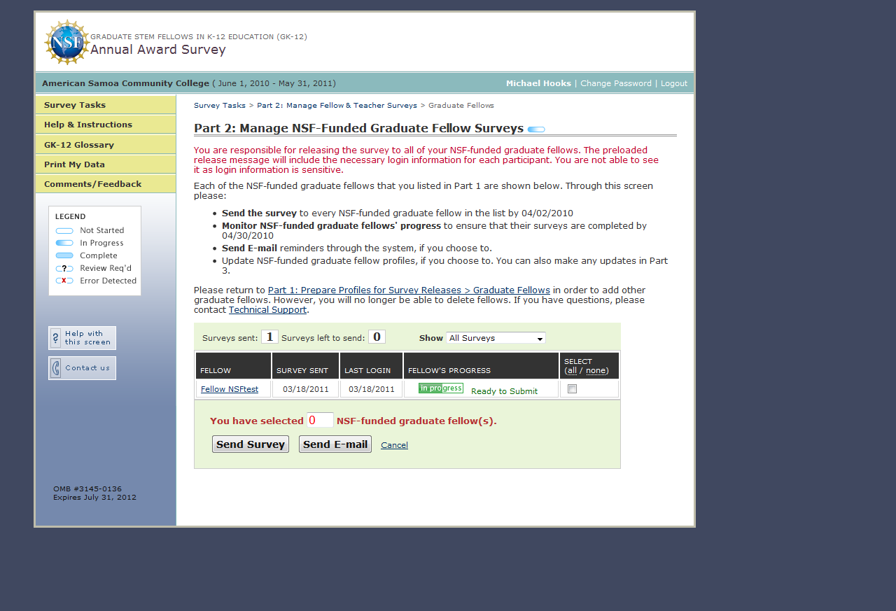 GK-12 Monitoring System Screenshots: Award Survey