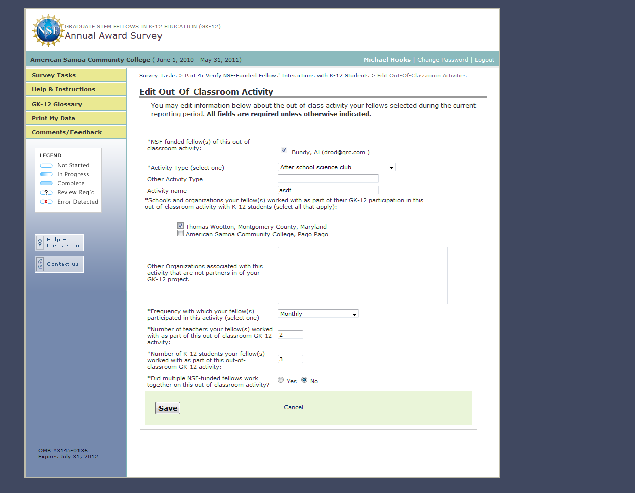 Graduate STEM Fellows in K-12 Education (GK-12) Monitoring System