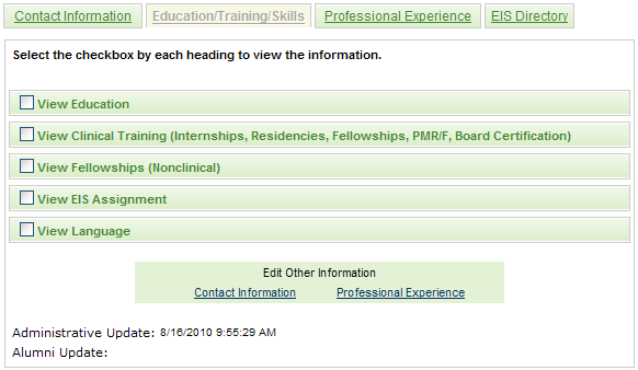 Example: EIS Directory information / data collection NOTE: Appendix B in this document includes the data elements collected from alumni of the other CDC fellowship programs. |