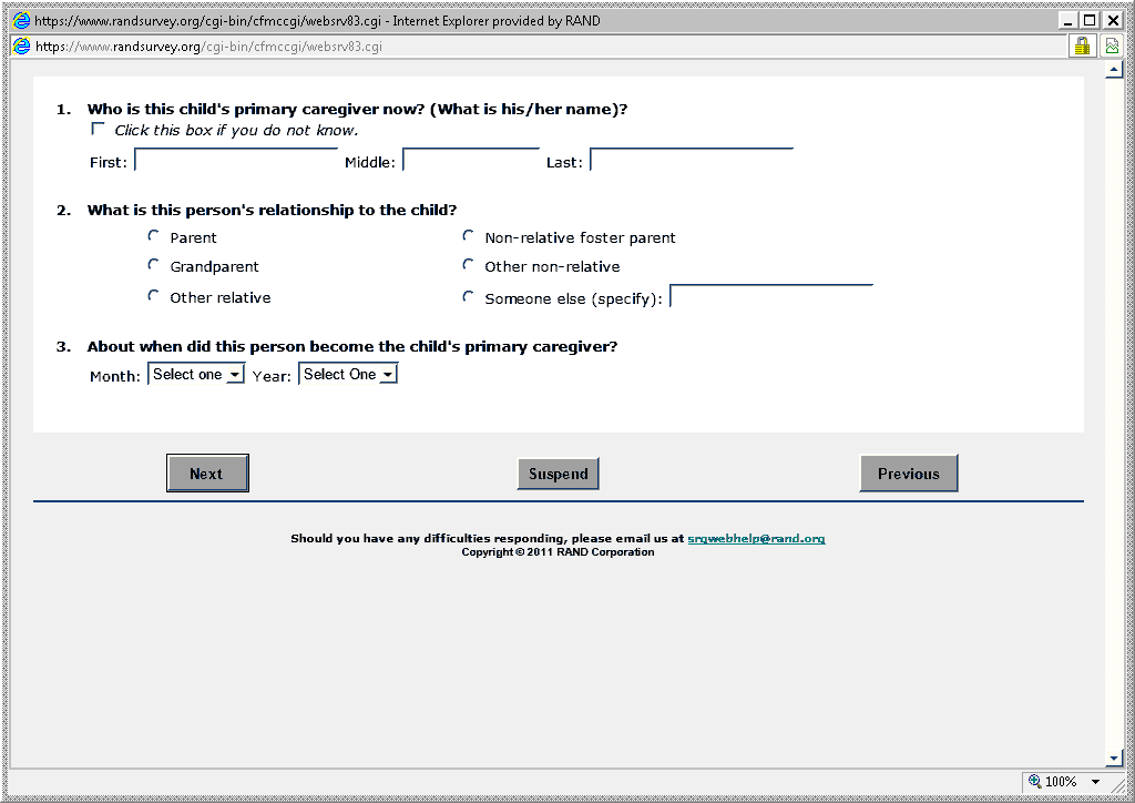 * If NO, Respondent will be skipped to the “New Primary Caregiver” section of the survey