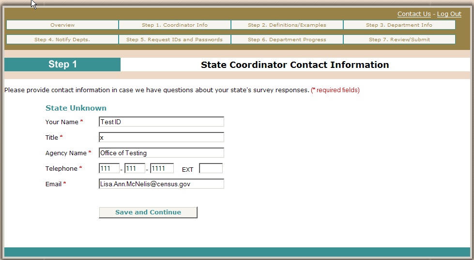Step 1. Coordinator Contact Information.