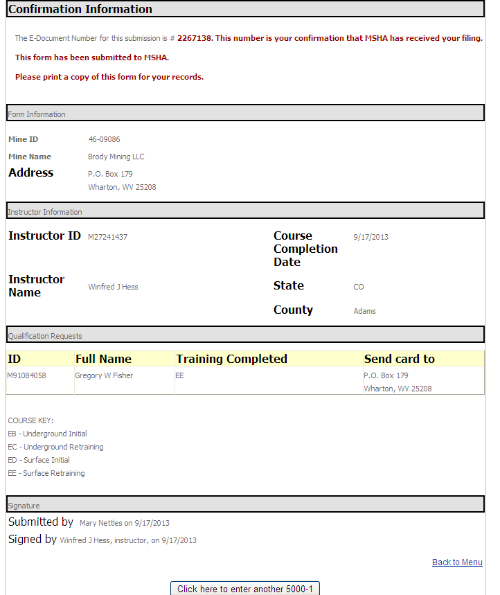 Certificate of Electrical Training and Applications for Mine Safety and Health Administration Approved Tests and State Tests Administered as Part of a Mine Safety and Health Admin. Approved Program