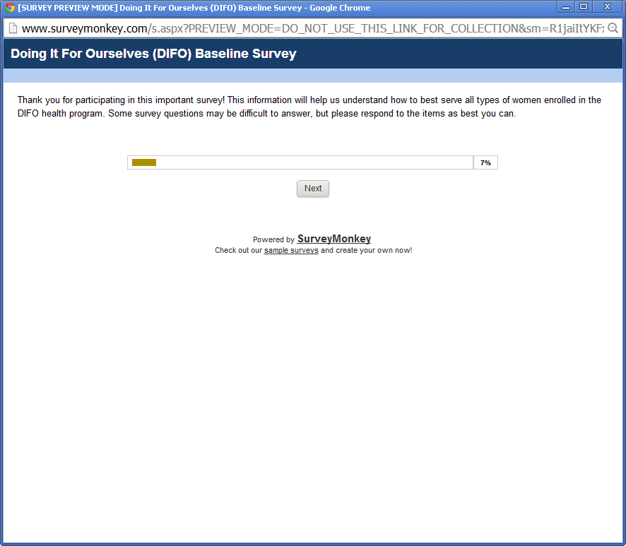 Baseline Survey (DIFO) SurveyMonkey Screenshots 8/26/2013
