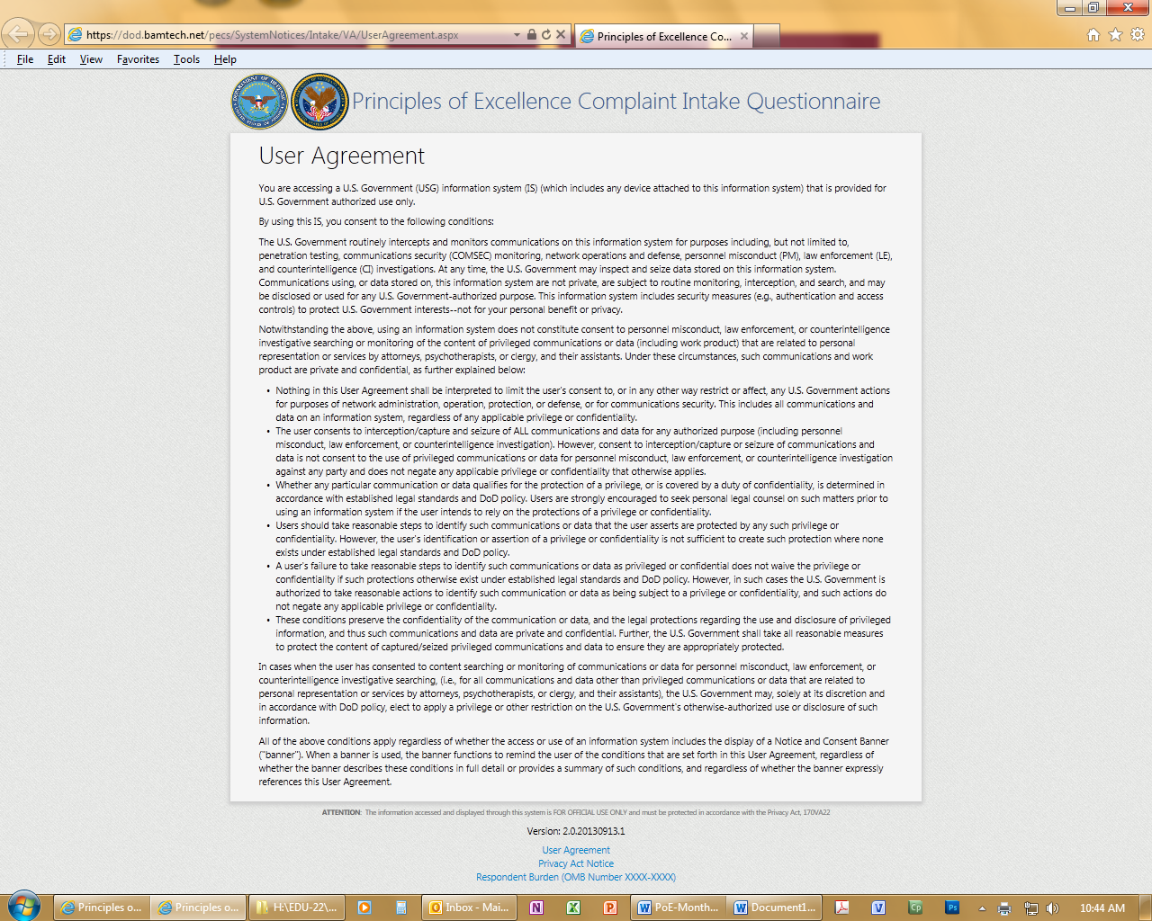 PRINCIPLES OF EXCELLENCE COMPLAINT SYSTEM – INTAKE QUESTIONNAIRE