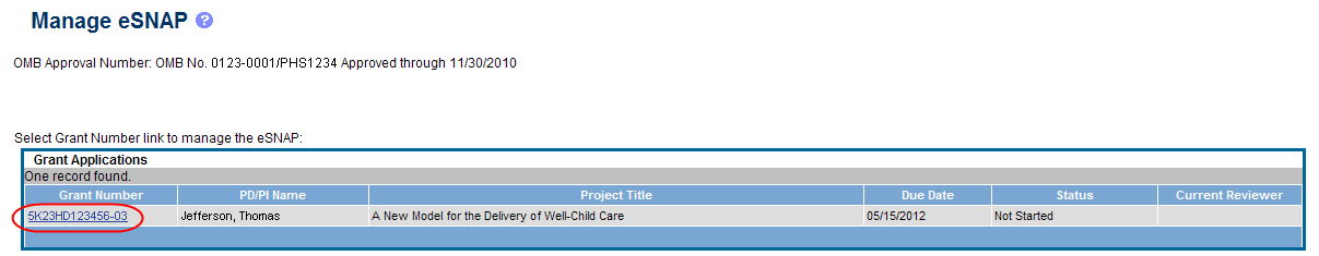 Figure 3: eSNAP Link on Status Result – List of Applications/Grants 7
