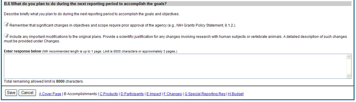 Figure 34: RPPR Section B. Accomplishments – Question B6 31