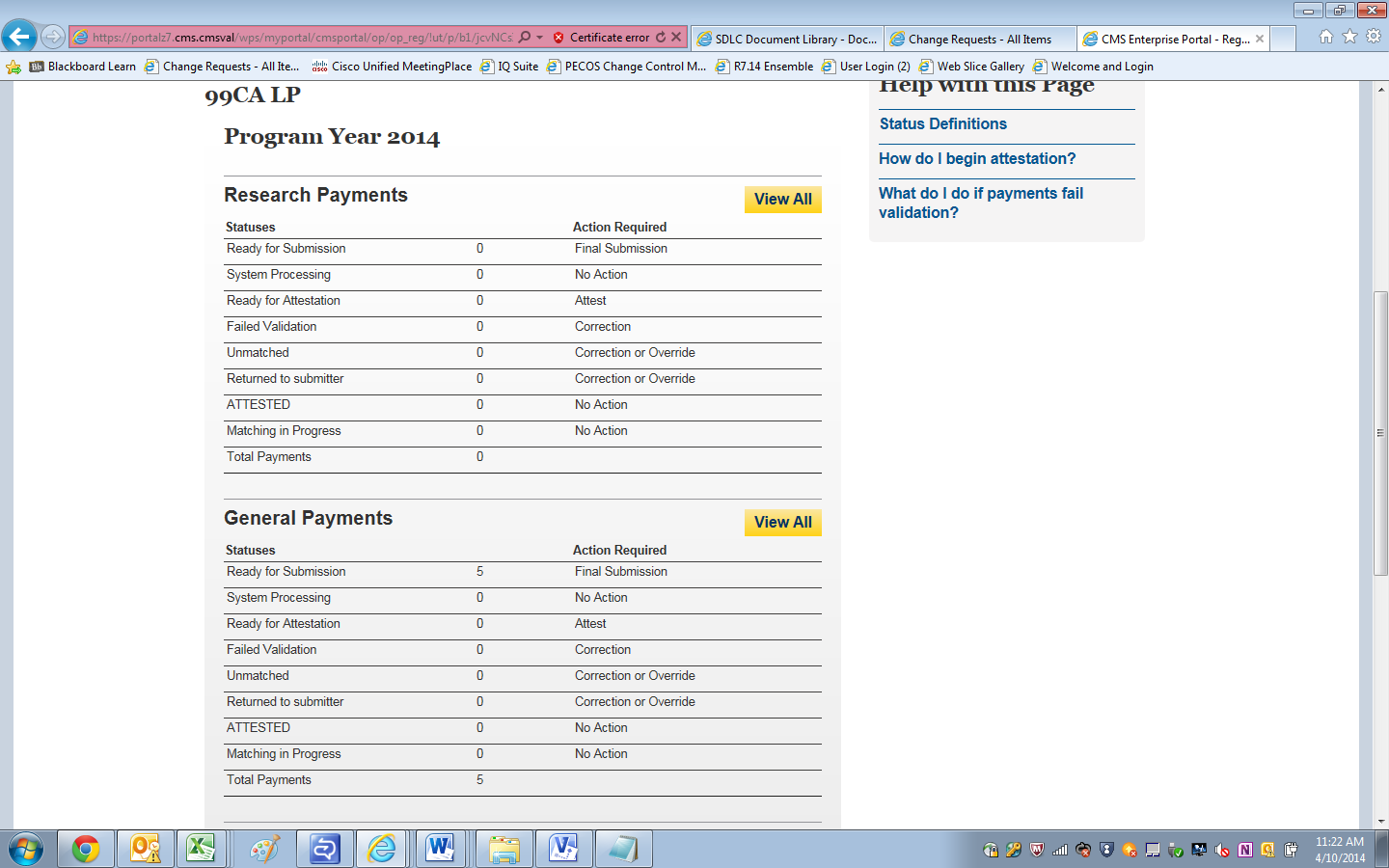 The screen shots below illustrate the workflow (submission + Attestation) of a user uploading a file containing general payments records.