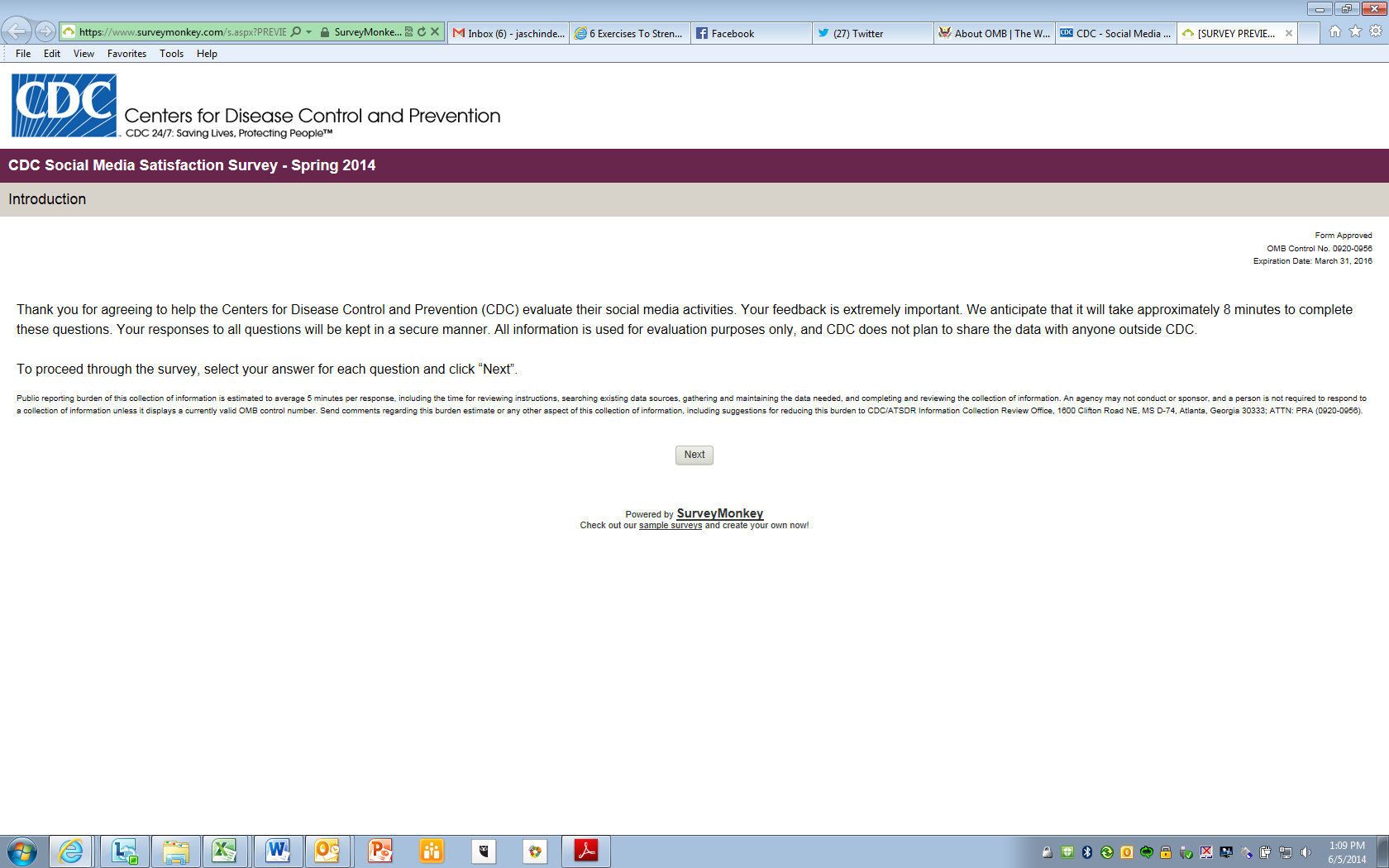 Clicking on the link will take them to the opening screen in Survey Monkey: