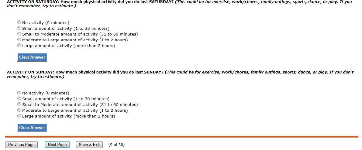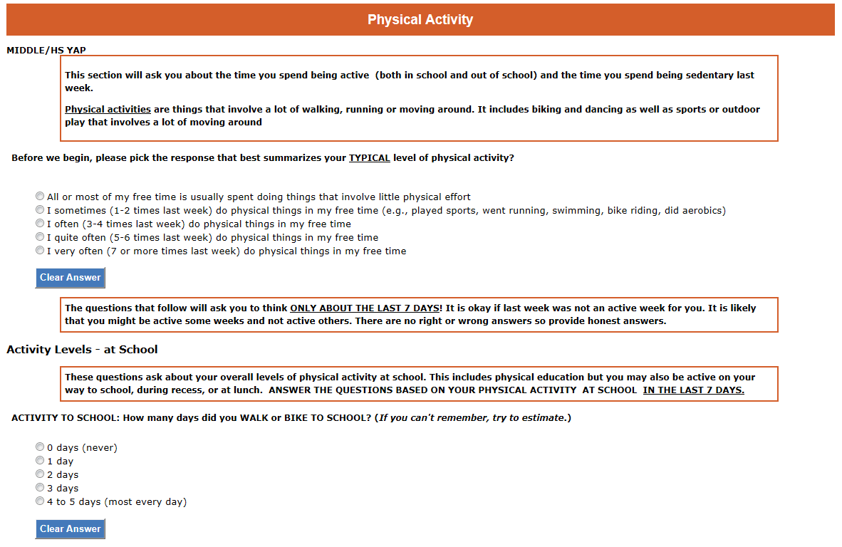 The questions for students in elementary school versus middle school and high school follow. Everyone resumes the same question series at Section 2.