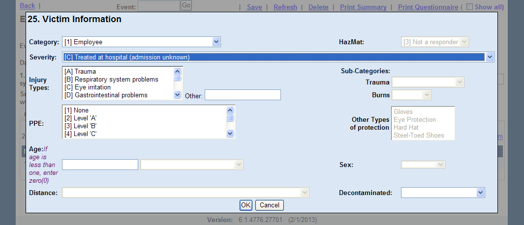 However, you should enter all available data. You should only save the event as complete if you feel that you have all of the data that you can get or will be able to get for that event. If you make an event complete and receive additional information at a later time, you can still make changes to the record. However, once you delete an event, it is no longer editable. If you delete an event by mistake, you will need to create a new record.