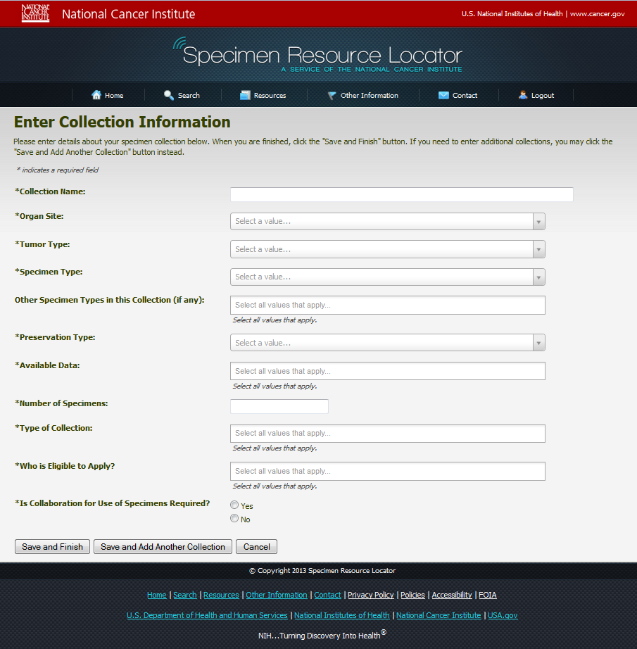 Attachment 2: Initial/Annual Resource Requirement Request - Website screen shots