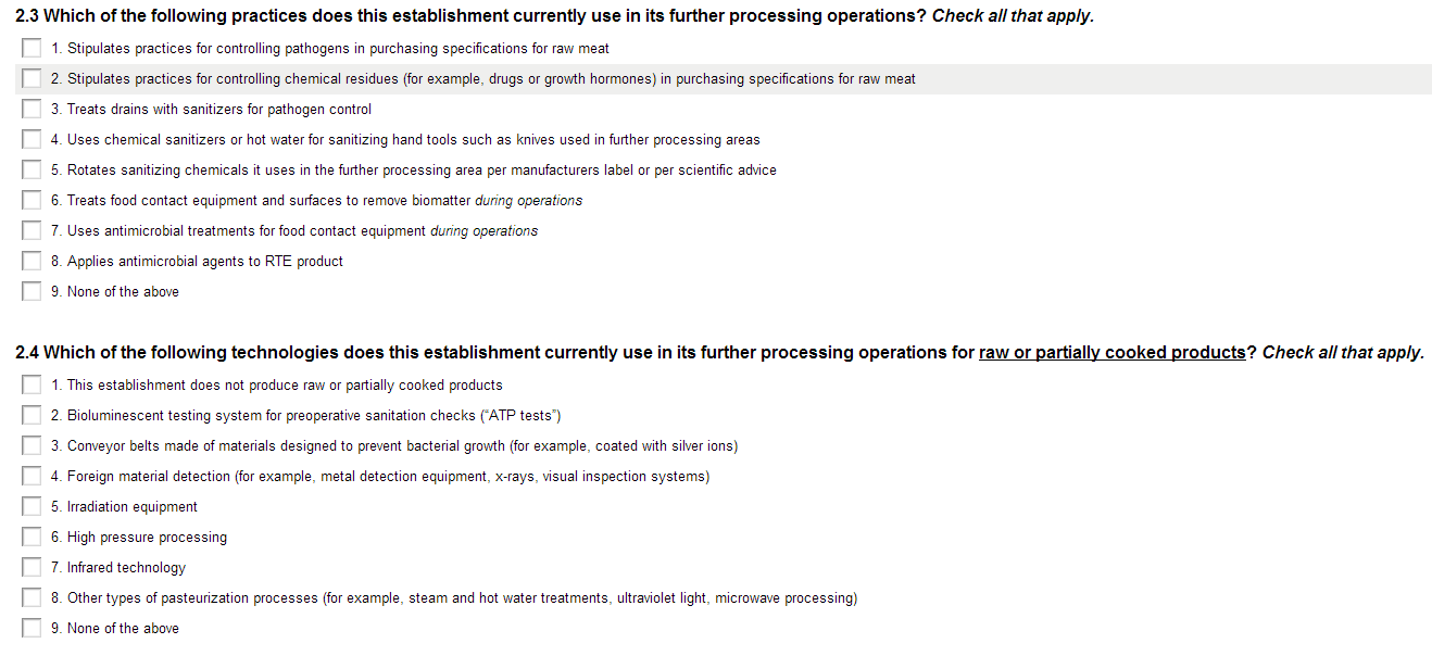 Survey of Meat Slaughter and Processing Establishments