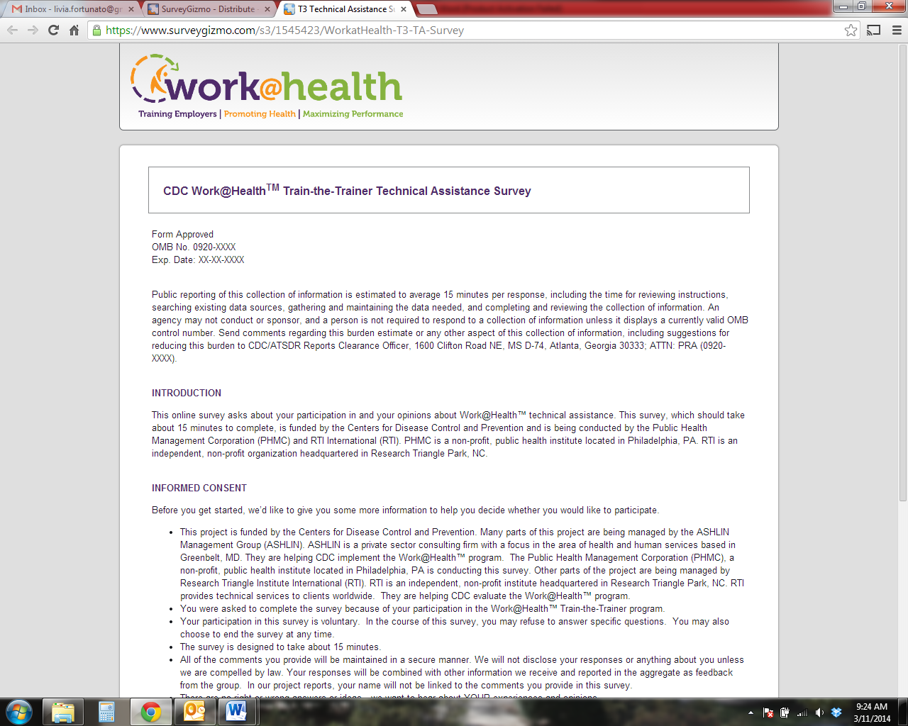 CDC Work@Health Train-the-Trainer Technical Assistance Survey