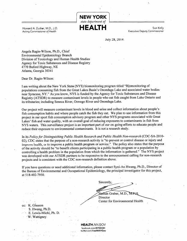 Attachment 5b. NYS DOH Determination Letter of Non-research Status