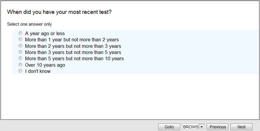 *Note: “Goto” and “Previous” buttons are for testing only, will not appear in production links.