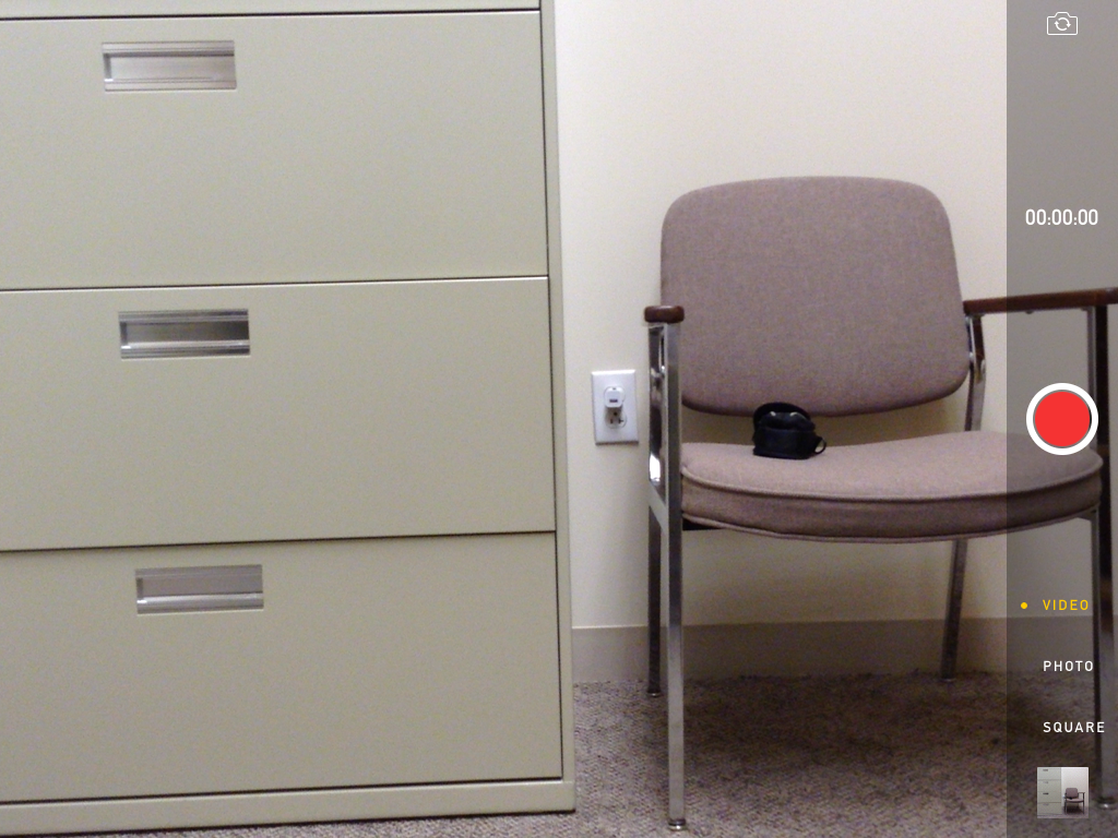 Step 5. Open the video camera by selecting the Camera icon. This will automatically bring up the camera mode on the iPad. It is important to note that at this time your iPad is NOT yet set up for video recording.
