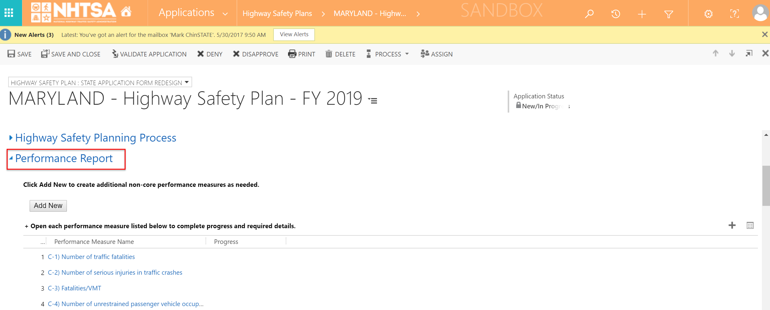 | Test Script ID: | GMSS-APP-402-0003 | Test Script Description: | Verify the appropriate details and functionality of the Performance Report section on the NHTSA Highway Safety Plan | Environment: | ||||