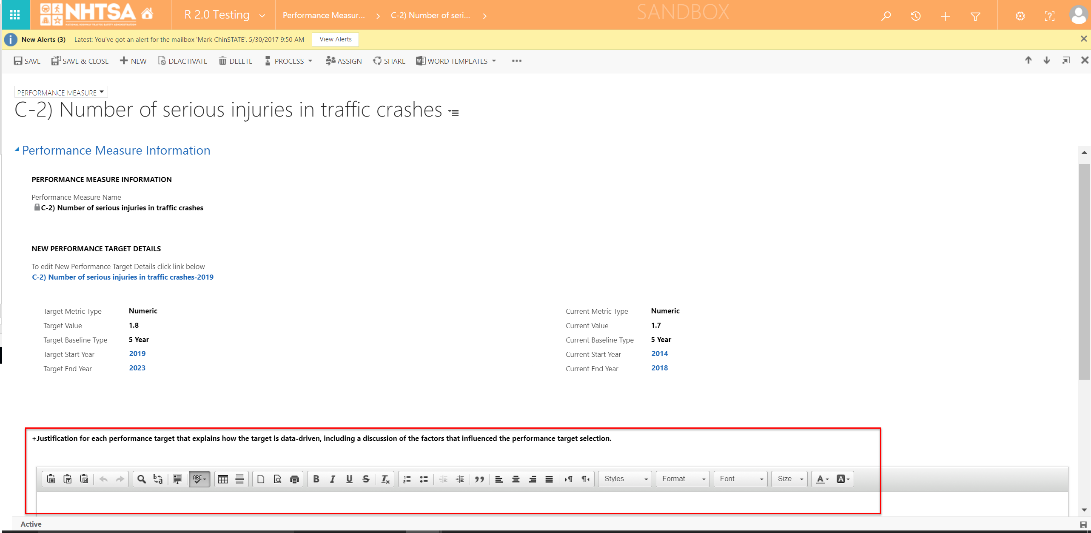 | 20 | All State Users | In the Performance Measure Information page, enter values in the text box under the description: Justification for each performance target that explains how the target is data-driven, including a discussion of the factors that influenced the performance target selection. |