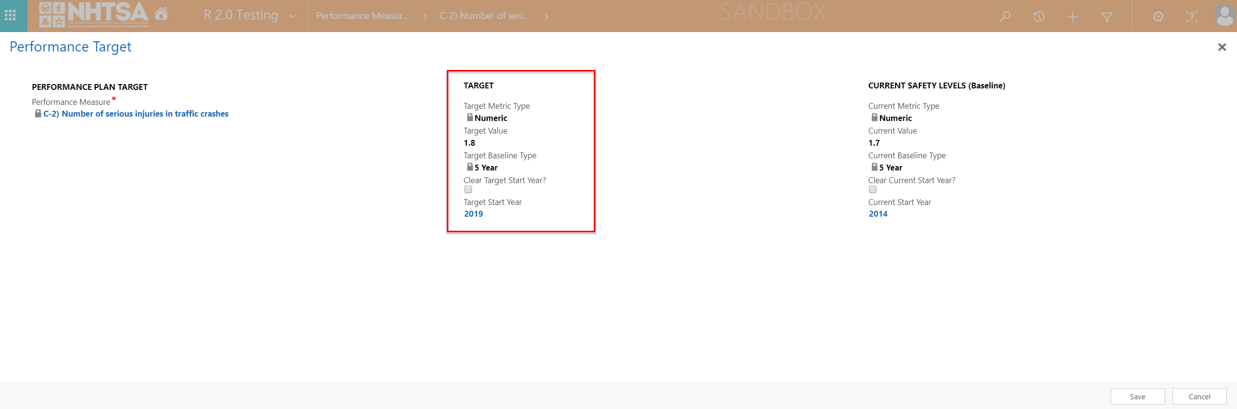 Information is saved in the record. The Performance Target entered in Steps 17-18 are now displayed in the Performance Target Details. | ||||