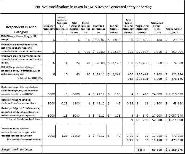 Proposed Changes in NOPR in RM15-23. The proposed rule does not require entities other than RTOs/ISOs to report information to the Commission. The RTOs/ISOs will gather the required data from the market participants directly. However, we include burden estimates not only for RTOs/ISOs, but also for market participants and Connected Entities.8
