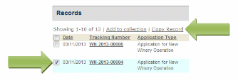 Place a checkmark in the box next to the application tracking number you wish to copy and then click the “Copy Record” link. Note: You can only copy the “Initial Tracking Number” application, not the Tracking Number TTB gave you after Acceptance of your Initial Application.