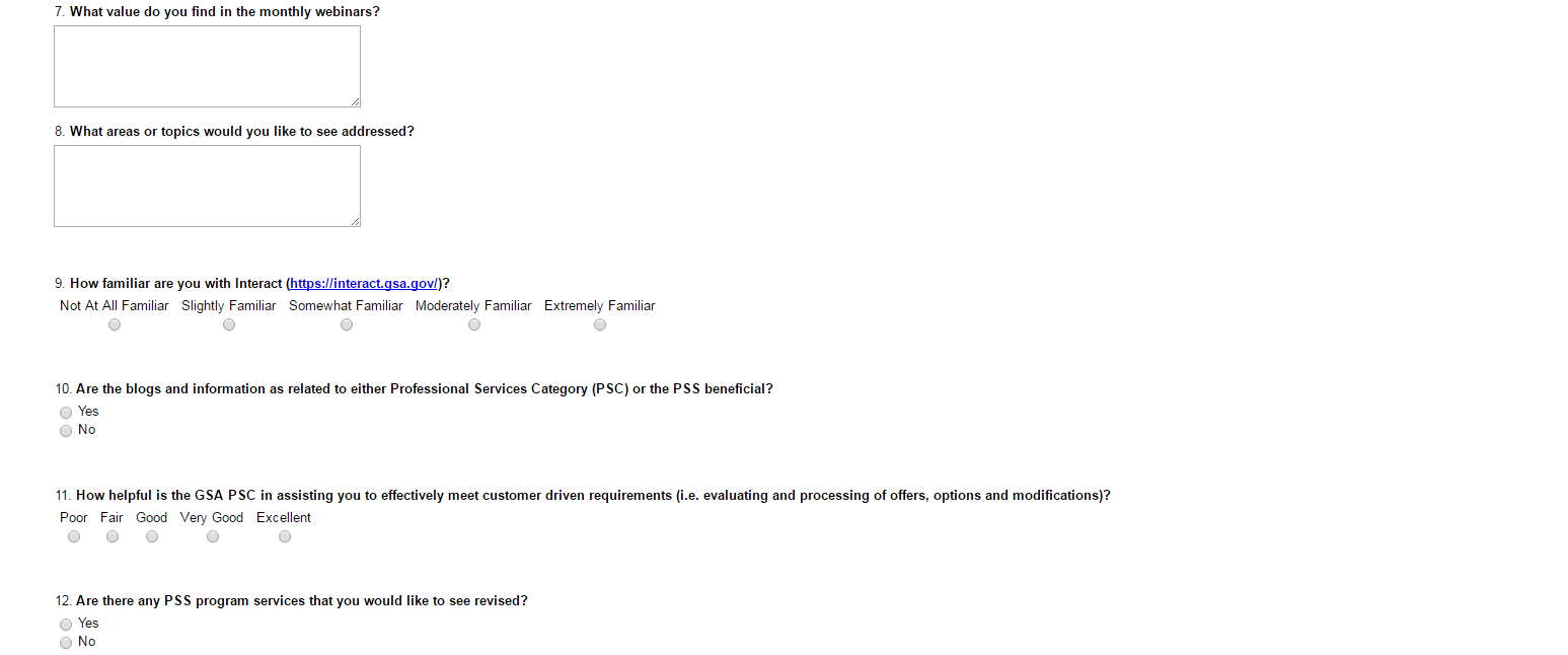 Don’t miss out on the opportunity to give us your feedback. Don’t let your company go under represented. If you have any questions about the survey or issues in completing it, please don’t hesitate to contact surveys@gsa.gov.