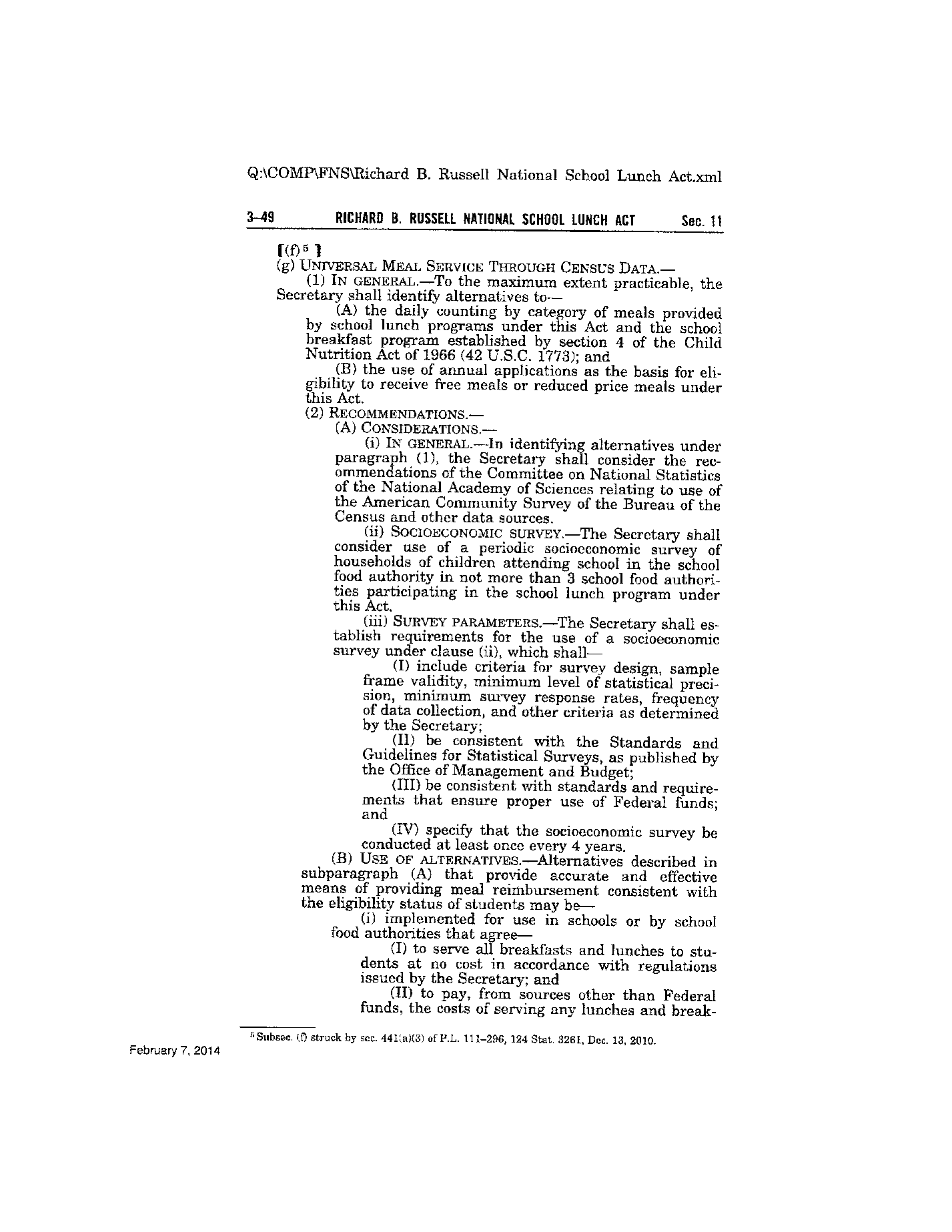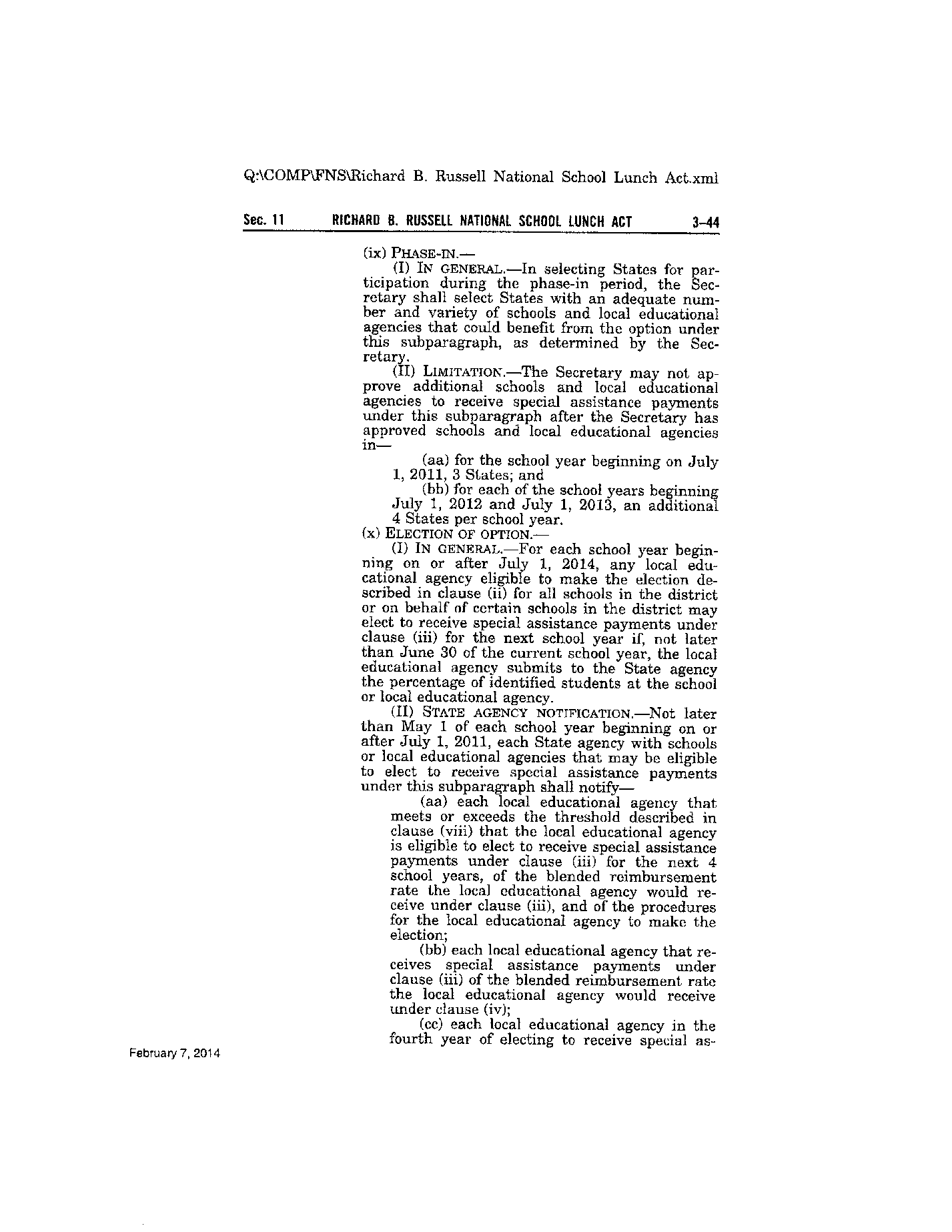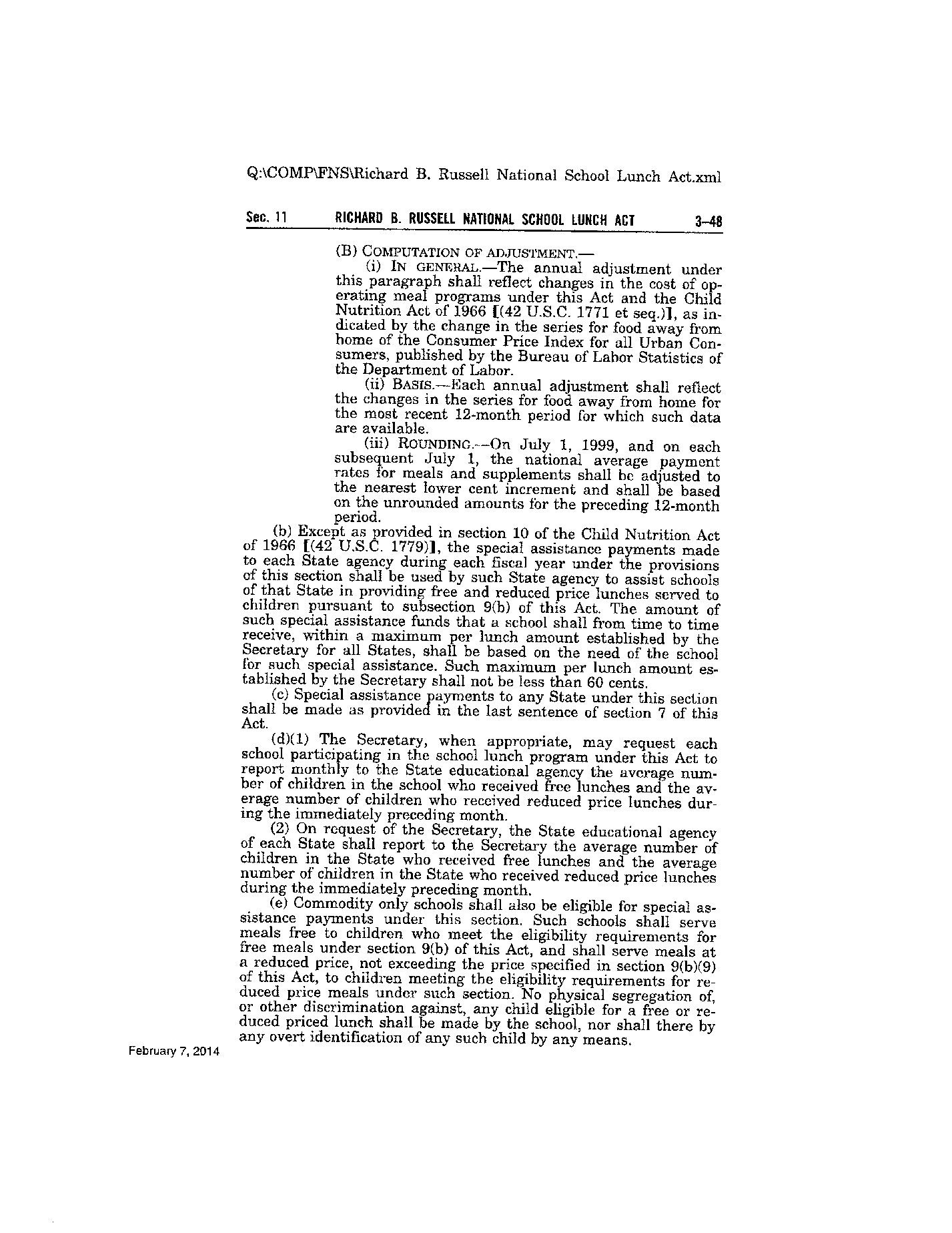 11(a)(1) OF THE RICHARD B RUSSELL NATIONAL SCHOOL LUNCH ACT AMENDED